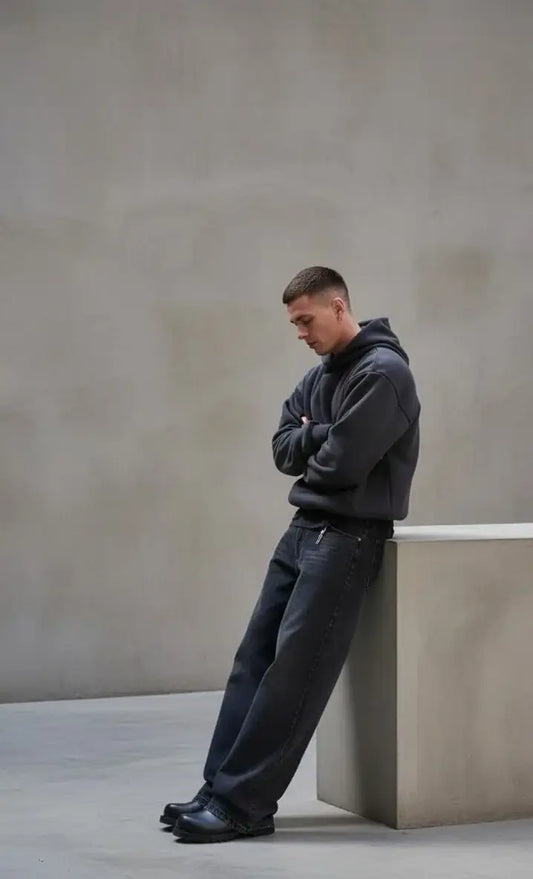 Der Stil ist geprägt von Minimalismus, klaren Linien und einem sehr dezenten Branding. Komfort und ein hochwertiges Tragegefühl stehen im Vordergrund, oft realisiert durch einen bewusst grosszügigen, oversized geschnittenen Fit.